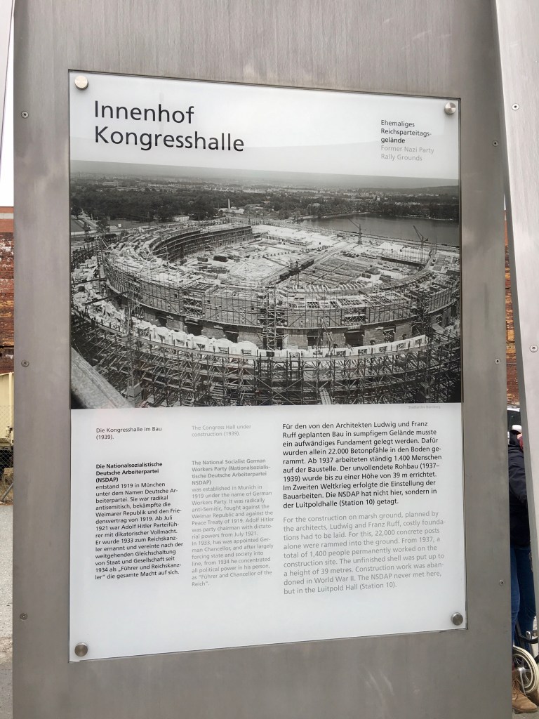 Nuremberg also had its share of the dark history. It was a city were the NS Party met regularly during the 1930 for their rally and party meeting and even started constructing the worlds biggest Congress Hall (Kongresshalle) on the NS grounds, where 1400 people were working on the construction permanently. The construction never saw its completion due to the interruption during the second world war. The unfinished structure had reached a height of 39 meters till 1945. The NS Party never met here but in the Luitpold Hall (image below) located nearby.